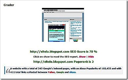 Pernahkah Anda melakukan pengecekan terhadap seberapa tinggi perolehan nilai SEO dari template yang Anda gunakan? Ya, SEO Score. Bisa jadi selama ini hal tersebut merupakan salah satu faktor dari berbagai faktor lain yang menjadi sebuah pertimbangan bagi seorang Blogger ketika ingin menggunakan template tertentu untuk blog yang dikelolanya. Sehingga apabila diberikan beberapa pilihan template yang serupa dengan peringkat SEO yang berbeda, maka bisa jadi template yang dipilih untuk kemudian dipasang dan digunakan adalah template yang memiliki SEO Score paling tinggi. Namun tahukah Anda bahwa sepertinya peringkat awal sebuah template bukanlah suatu jaminan untuk mendapatkan nilai SEO yang tinggi pada blog yang kita kelola, karena bisa saja SEO Score akan berubah seiring dengan penambahan atau pemasangan widget pada blog yang kita kelola.